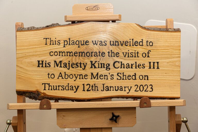 His Majesty was given a tour of the ground floor which houses the Aboyne Men’s Shed workshop. During the tour, he watched